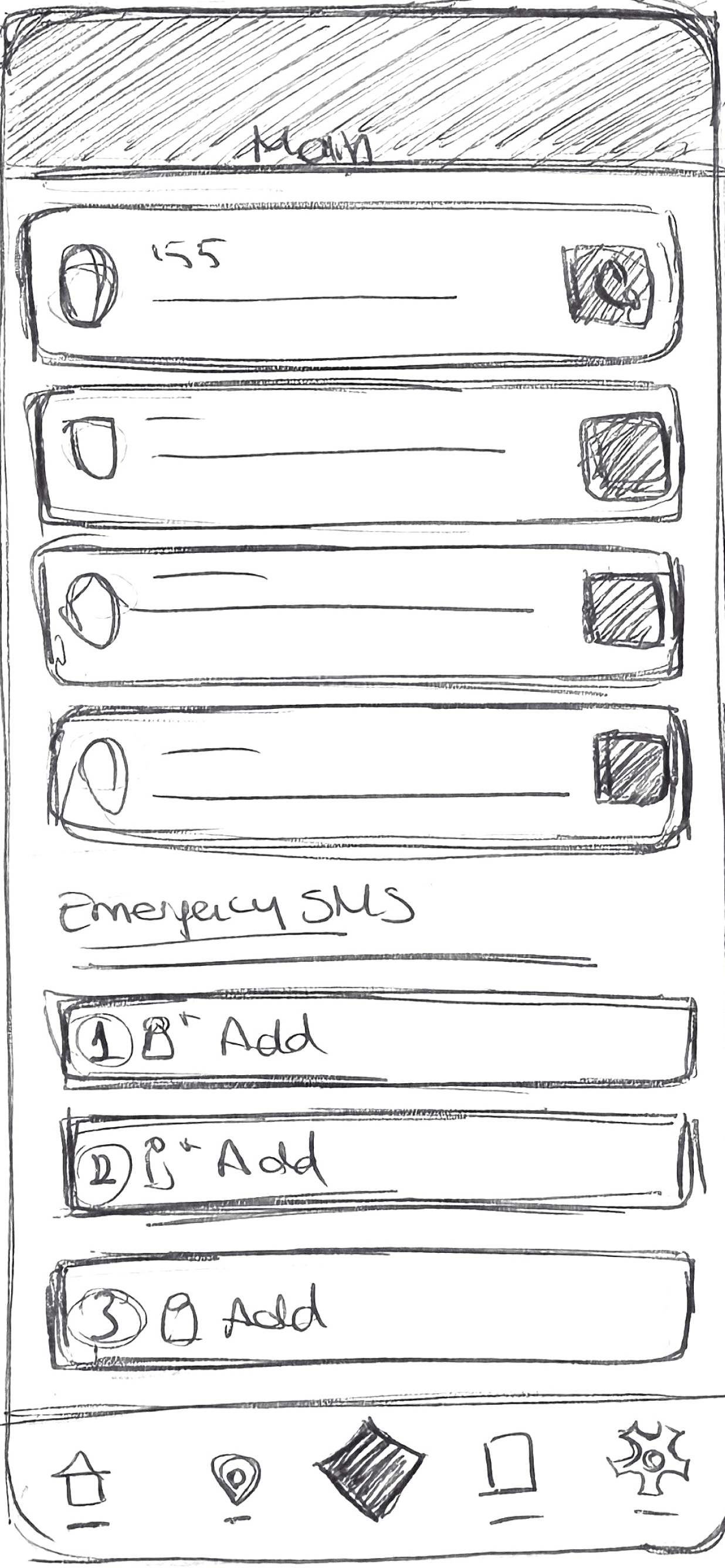 I contributed to interface evolution and redesign efforts under mentorship, focusing on improving the speed and visibility of emergency actions and refining concealment patterns such as the flashlight disguise for high-risk use contexts.