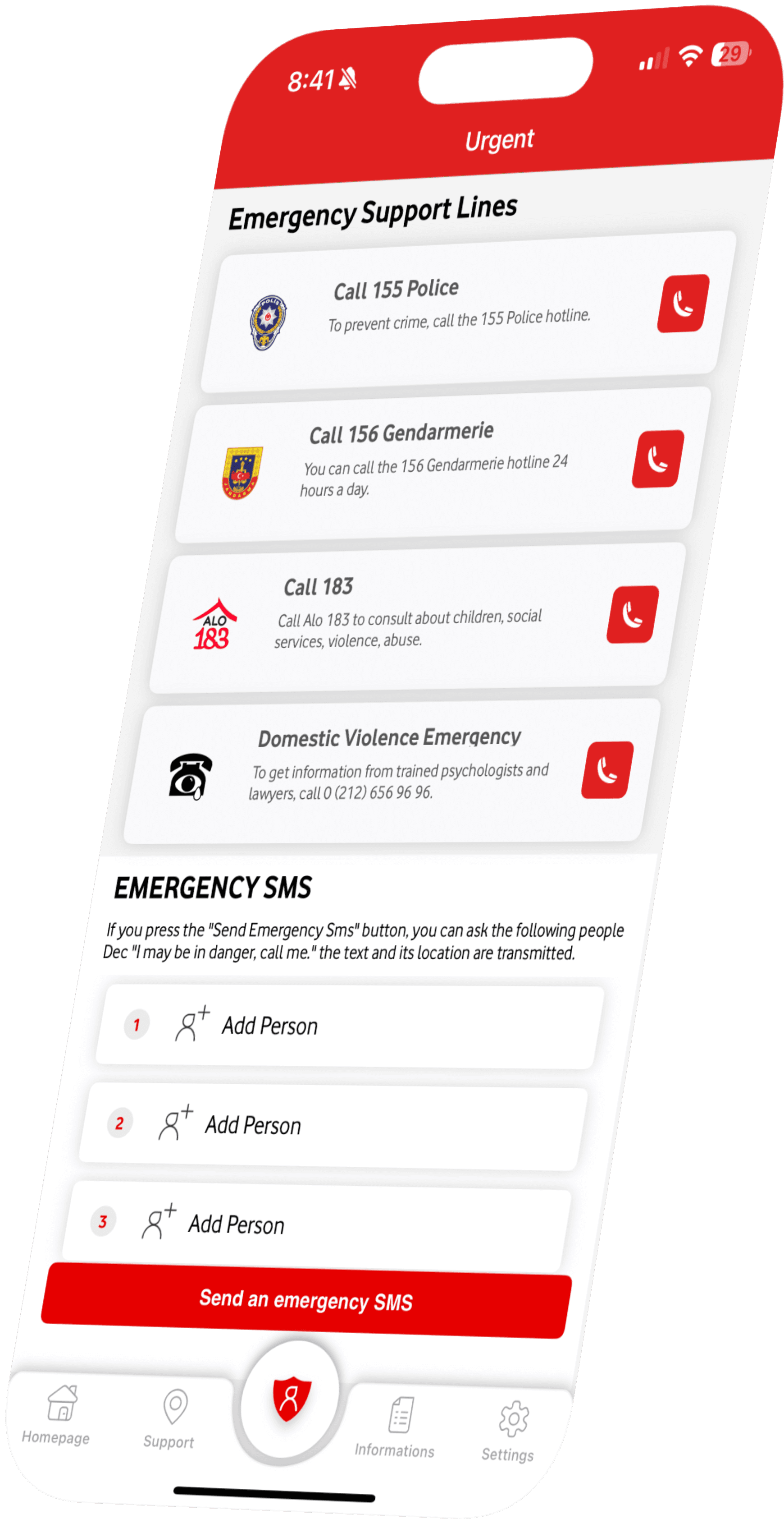 Red light is a mobile safety application designed to support women experiencing or at risk of violence by enabling fast access to emergency support during dangerous situations.
