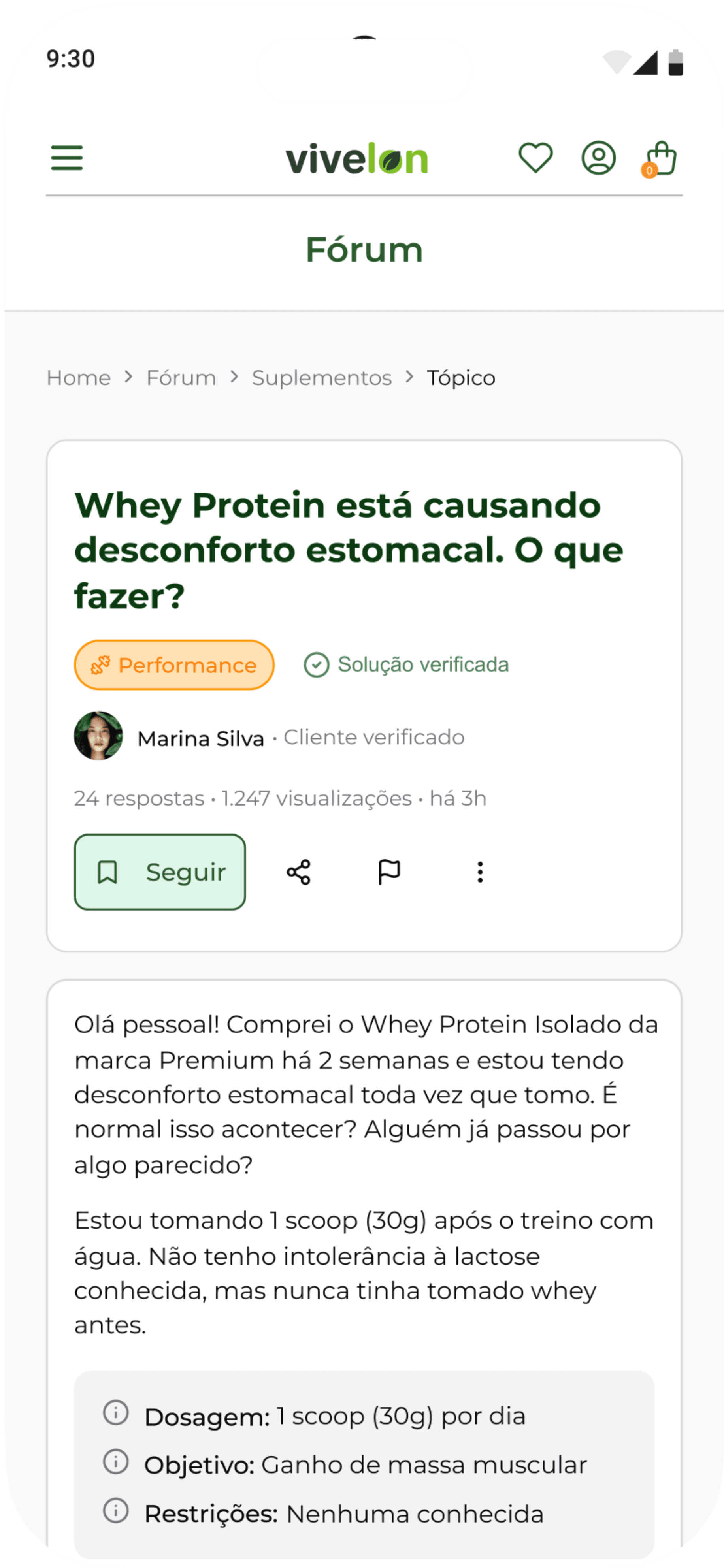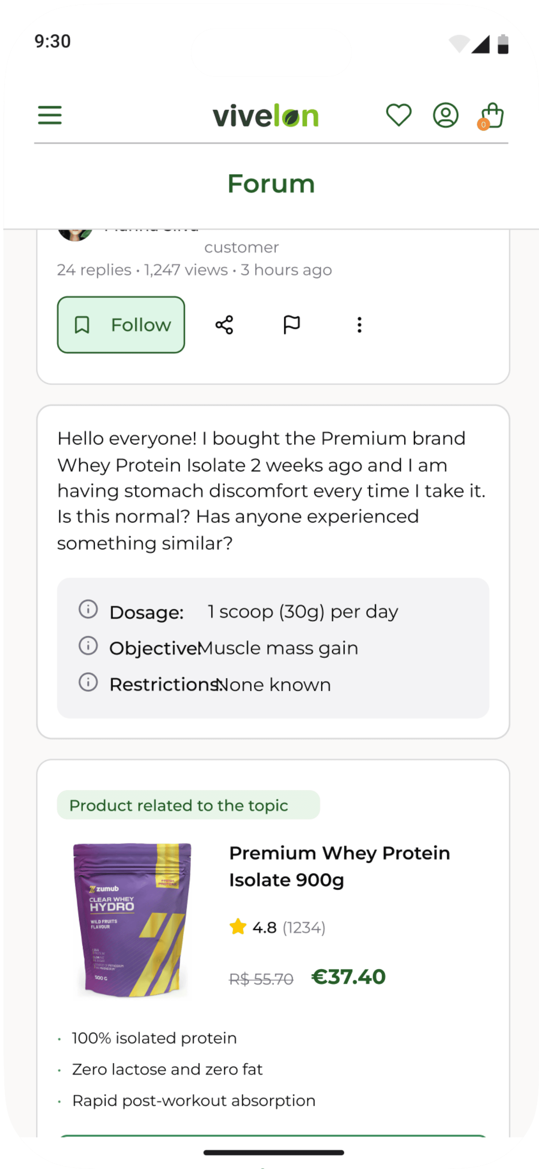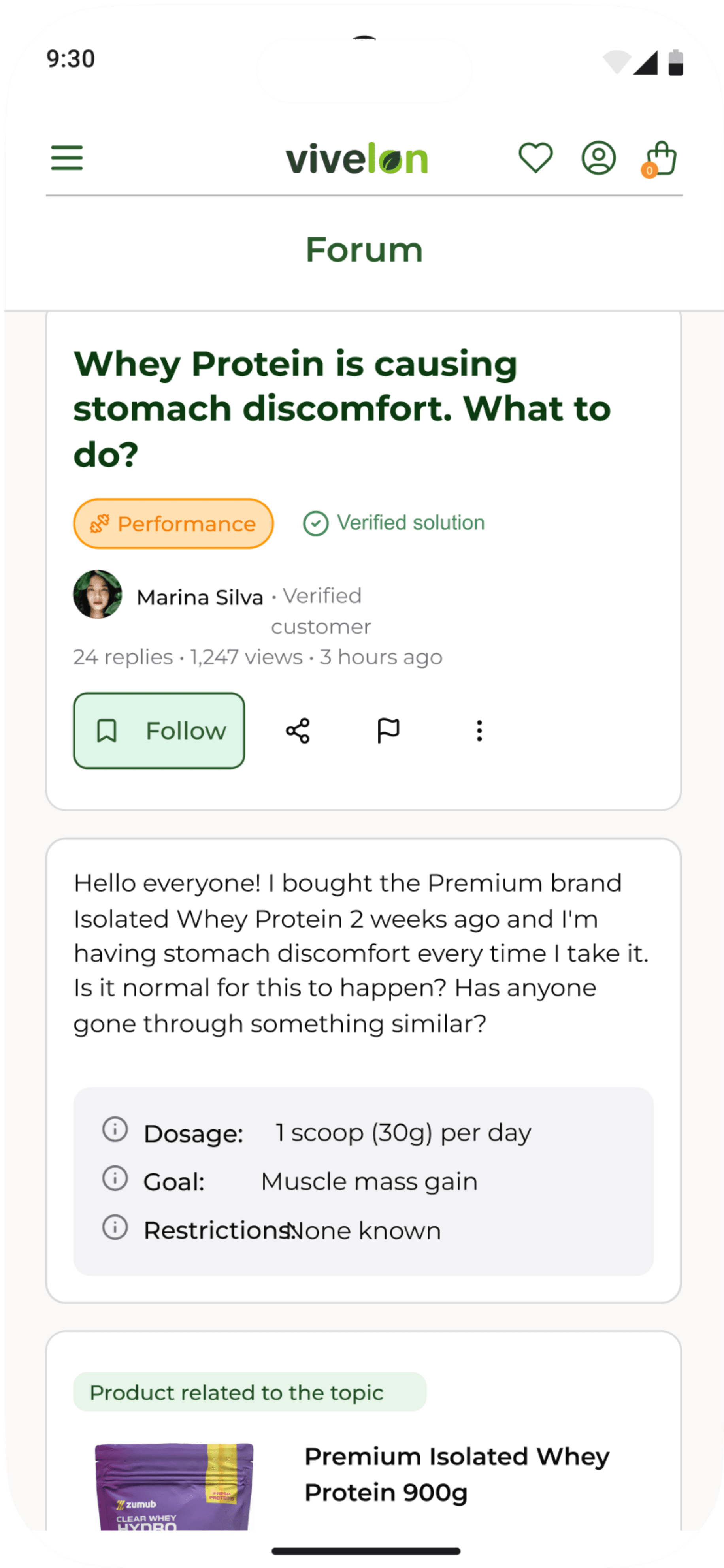 The forum complements the shopping flow without interrupting it, allowing users to explore information at their own pace.