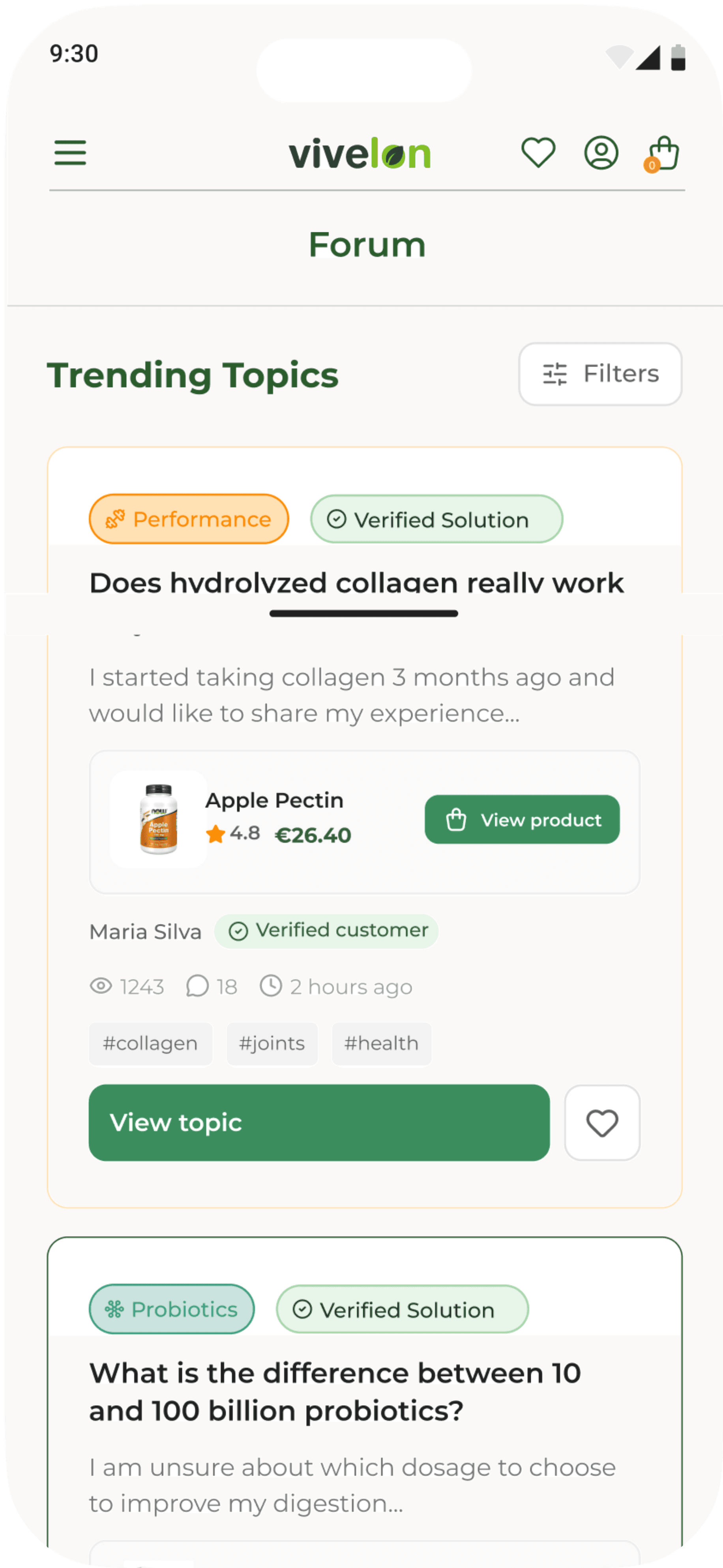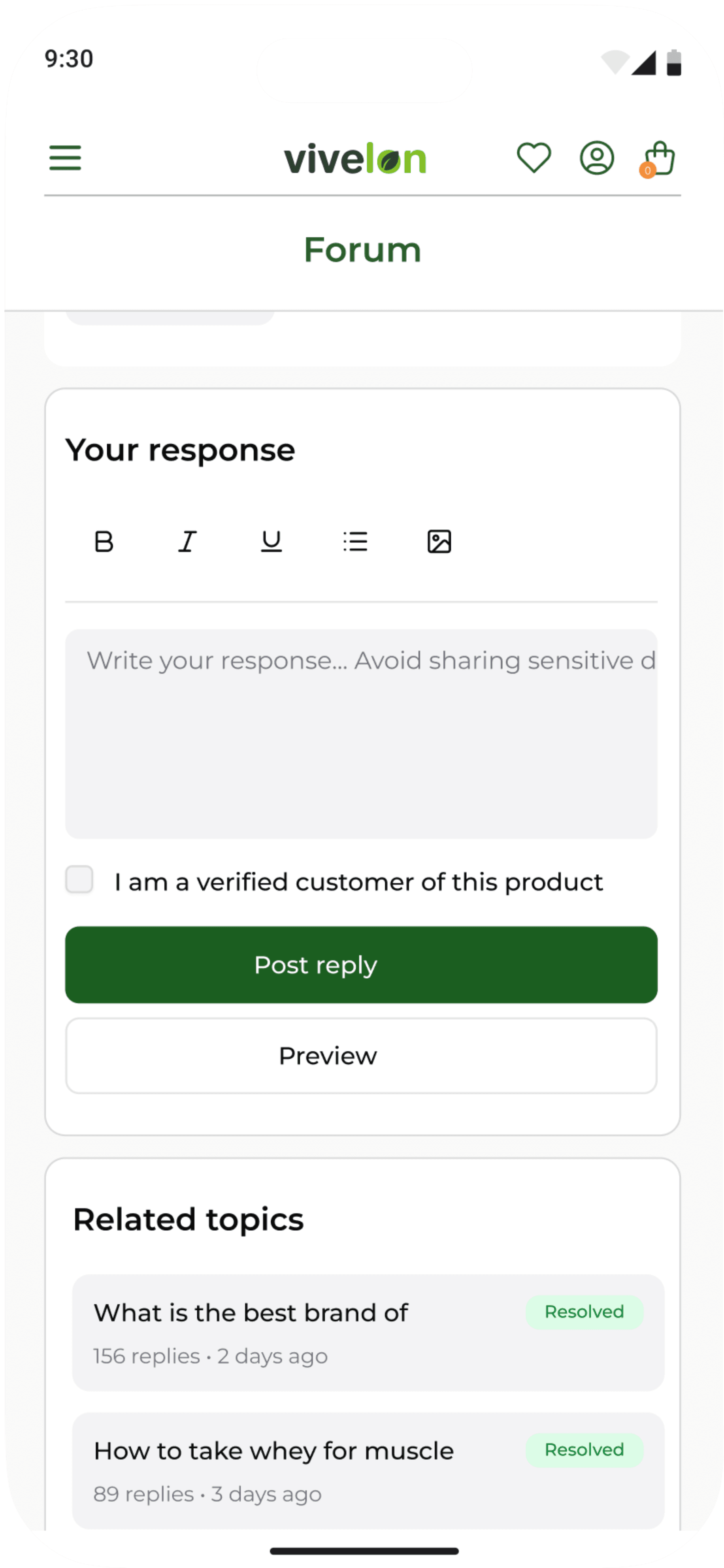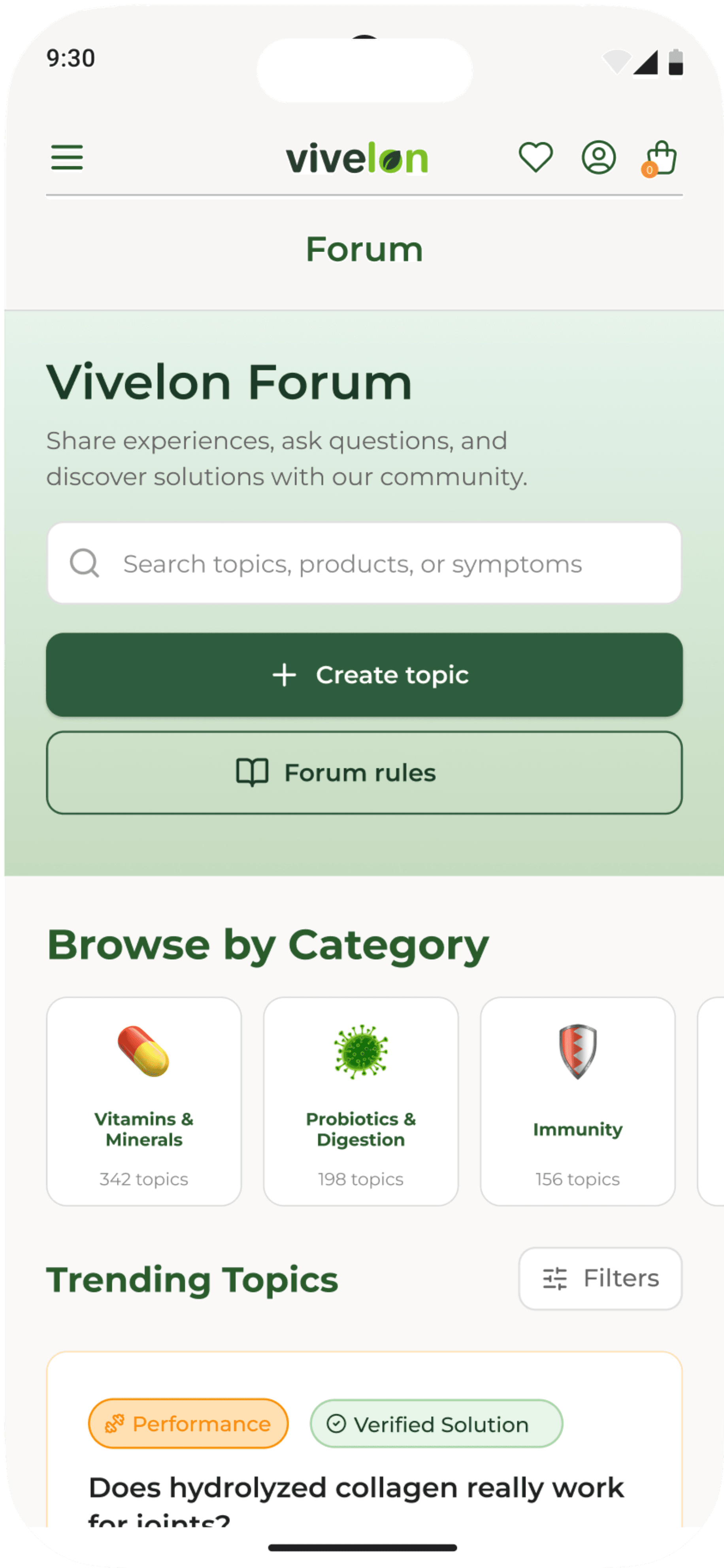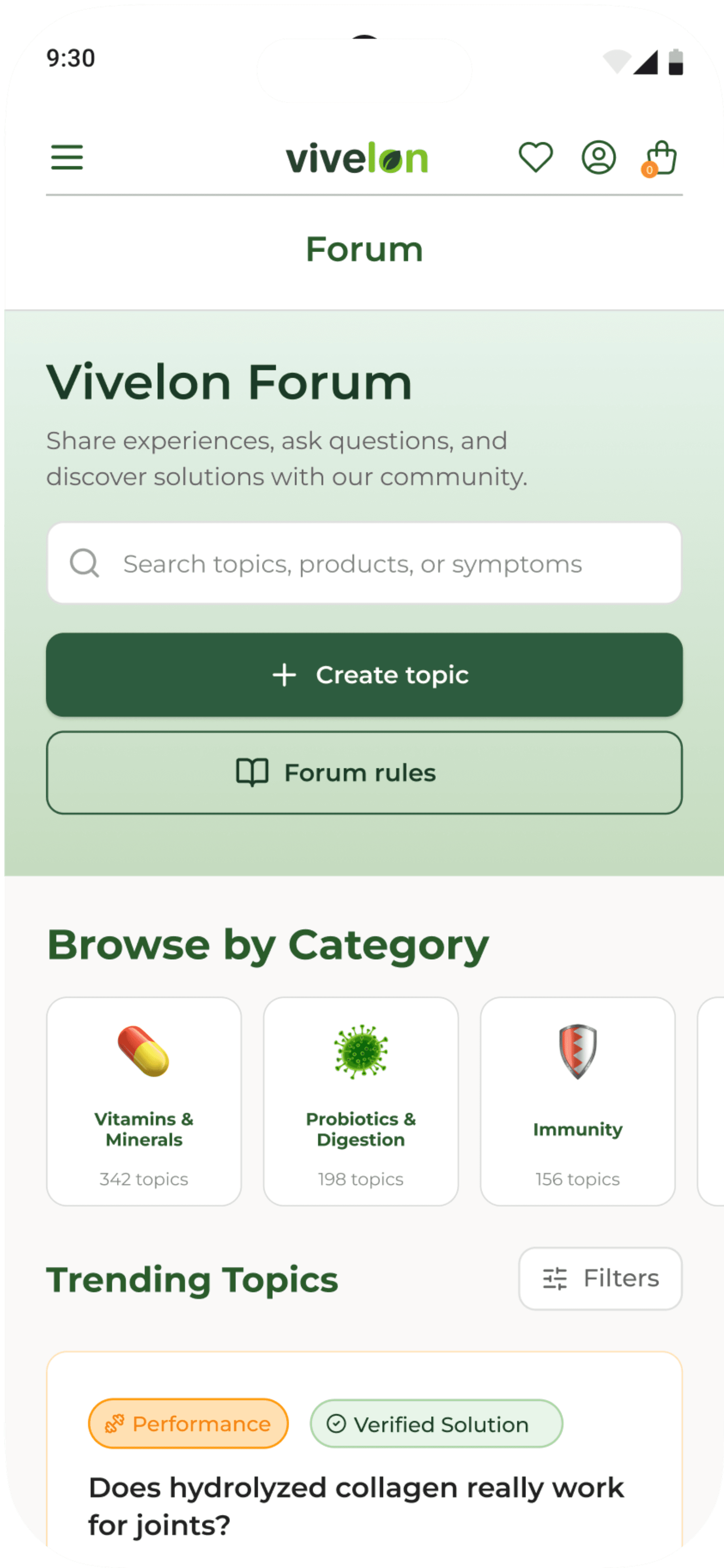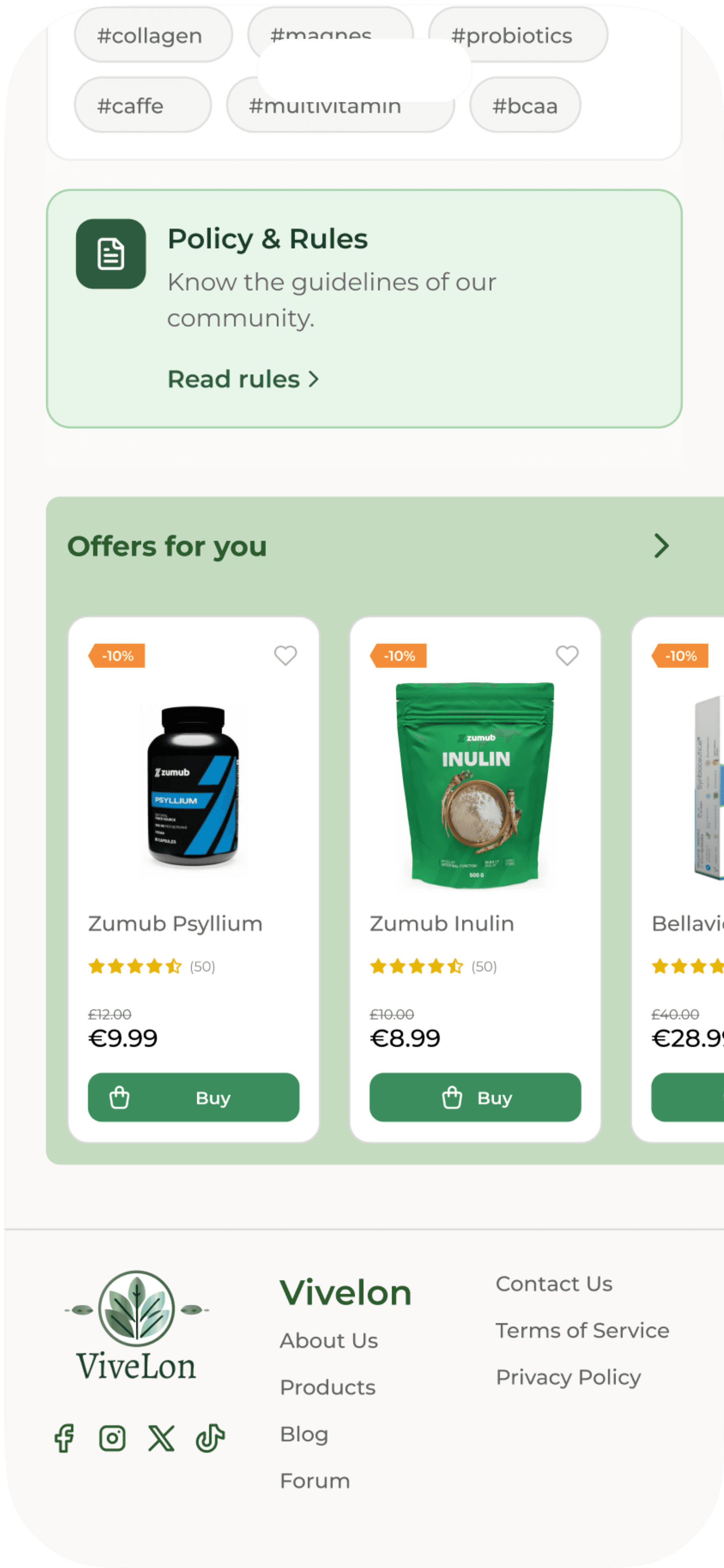Vivelon is a wellness e-commerce platform enhanced with community and expert support.